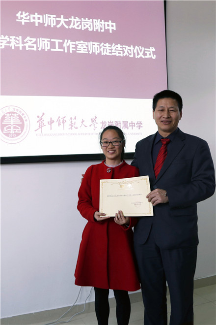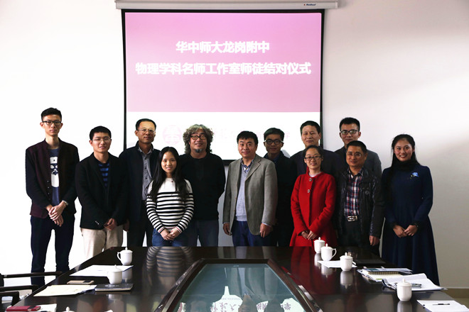 本次,华中师大龙岗附中成立了物理学科名师工作室,聘请了六位深圳市物理教育大师作为学科指导教师,他们是深圳市教育科学研究院教学研究中心汤幸初主任、深圳市物理教研员姚中化老师、深圳市华侨城中学物理特级教师陈汉光老师、深圳市第三高级中学物理高级教师黄水南老师、深圳市龙岗区物理教研员曲志新老师以及深圳市翠园中学物理高级教师彭四兴老师。仪式现场,张丽清副校长为这六名资深物理教育大师颁发了聘书,七名青年教师当场拜师,全校物理教师见证了这个简朴而隆重的仪式。