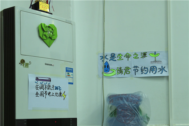 在校内环保标语制作环节,同学们通过自制海报等方式通过校园展板宣传了环保理念,并在教室电灯开关、饭堂等地方新增了“随手关灯”等温馨提示语。在班级健康生活布置中,同学们则大显身手:有的买来了盆栽,为教室添加了点点绿意,有的利用废纸废报制作了精美的窗花,为教室带了丝丝暖意。在创意环保作品比赛中,不少同学则对健康生活进行了一番思考,有的利用废弃饮料瓶制作了“班级饮水机下蓄水装置”,有的则改良了扫帚,使其更方便打扫瓷砖地面的碎发……