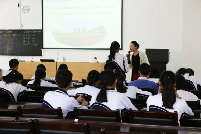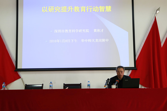 深圳市教育科学研究院英语教研员李睿老师莅临华中师大龙岗附中观摩评价了两位英语教师的展示课,随后深圳市教育科学研究院教育科研管理中心黄积才主任给华中师大龙岗附中全体教师做了精彩报告。
