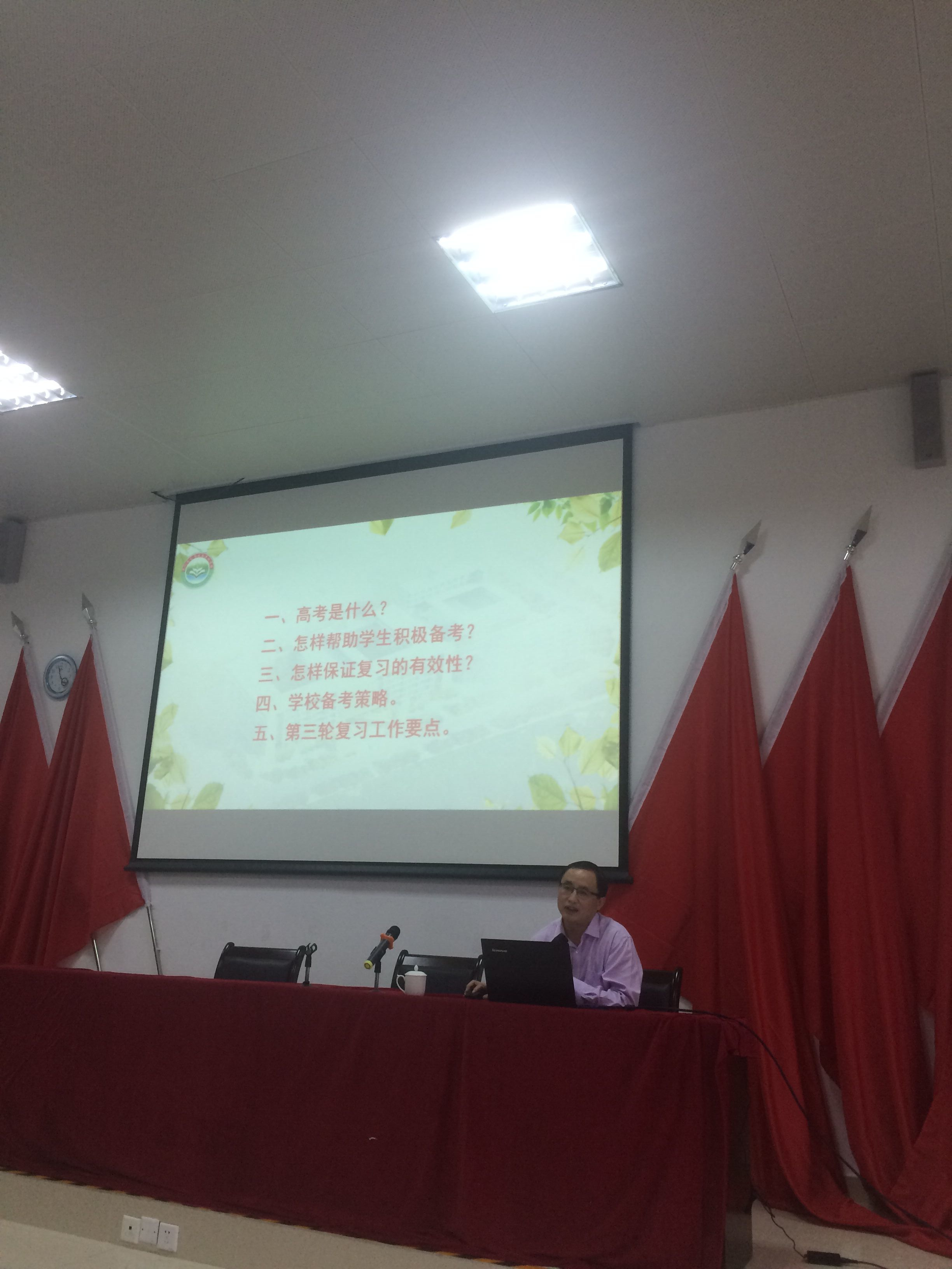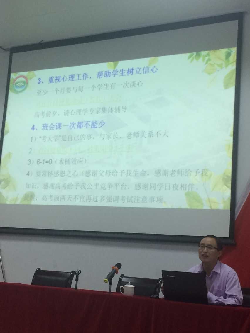 王校长从几张生动的图片开始,带领老师们认识高考。重视高考,更要超越高考。要让学生毕业时,带着对母校的眷恋、带着对老师的感恩离开学校,这才是学校教育的成功。王校长重点分享了高考备考的策略。首先是要早计划,早安排。制定复习计划,发挥集体智慧,确定责任老师,加强督促检查。其次是要定目标,定任务。科学评估,确定目标,任务分解。在备考过程中还要多调查,多研究。深入调查,广收信息,加强研究,遵循规律。最后是要重过程,重管理。重视常规,加强沟通,及时诊断,商讨良策,促进高考复习的有效进行。