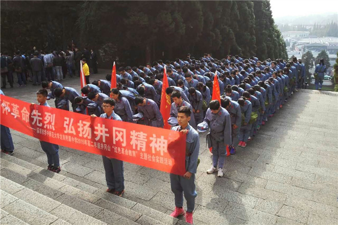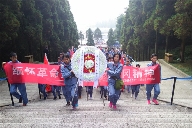 他们首先来到了井冈山革命烈士陵园,开展了“缅怀革命先烈,弘扬井冈精神”祭奠先烈活动。在庄严肃静的纪念堂前,他们安静地聆听革命先烈为理想信念英勇献身的故事,向先烈们敬献花圈,集体默哀。最后,他们集体宣誓:要弘扬井冈精神,向革命先烈学习,为共产主义事业而奋斗终身。