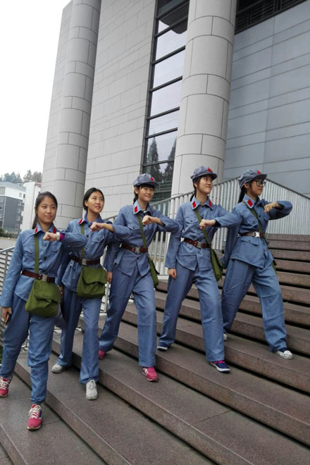 10月28日早晨7点,华附173名学子统一着红军服,戴红军帽,背军绿色挎包,开始了一天的红军生活。