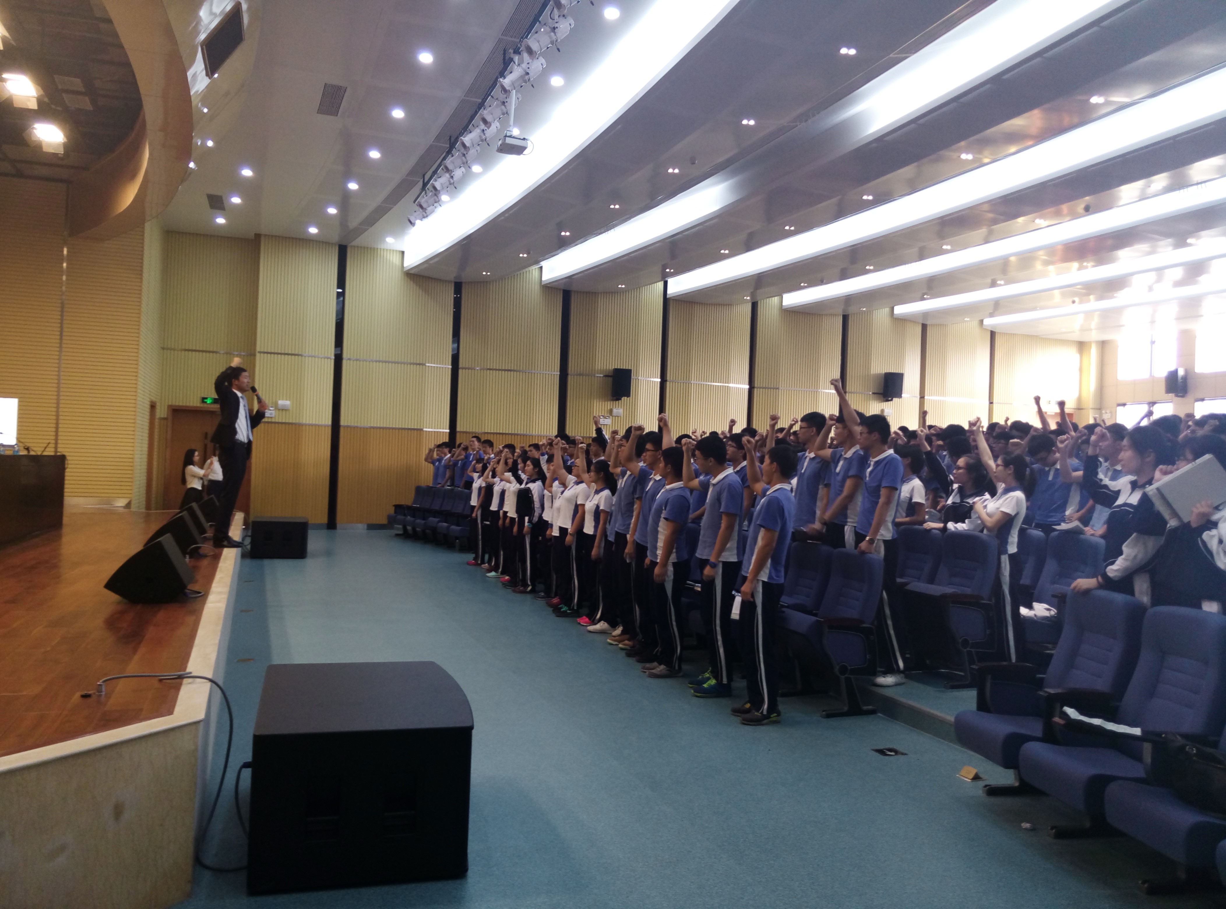 方可老师通过自身创业的故事、名人成功的经验以及高三学子的奋斗历程,坚定地告诉学生们:你,只有树立目标,充满激情和热血,拥有必胜的信念,永不言弃,才能决胜未来。“你的能量超乎你的想象”、“只要不放弃,就永远永远不可能失败”、“人生最大的敌人是自己”一句句朴实而又富含哲理的话语敲击着师生的心灵,引起了大家深深的共鸣。偌大的会场,时而掌声雷动,时而鸦雀无声,时而又呐喊迭起。