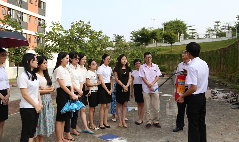 9月9日下午,我校在宿舍楼A4栋背后空地举行“2015-2016学年第一学期消防安全培训活动”,安全办为我校行政人员、高一、高二年级教师、保安员、生活老师、食堂工作人员和学生代表进行了消防灭火器的培训活动。