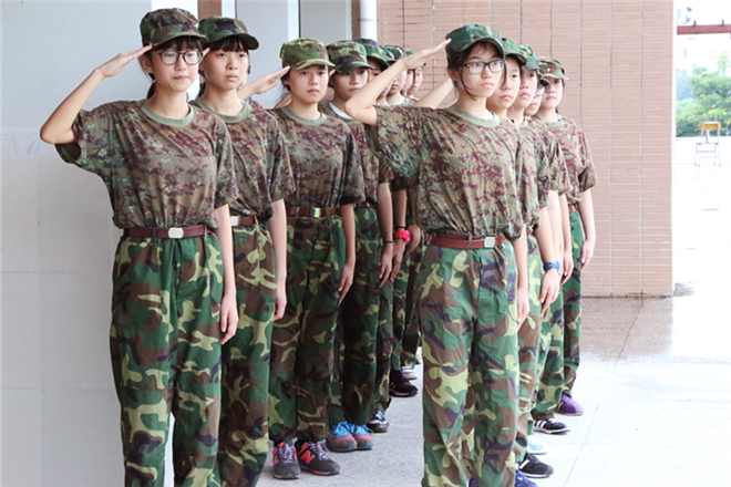 穿上军服,立正、稍息、跨立、军体拳,练习华附传统项目“跑操”……全程陪同学生的班主任和体育老师们纷纷表示:第一天的“大军营”生活并不轻松,许多仍处在“暑假生活节律”中的高一新生略感不适应。“军训第一天很多孩子不适应没手机的日子。我想这次军训就是一场‘及时雨’,帮助他们摆脱‘低头族’的习惯,适应高中作息”,班主任冯俊伟老师说。“我看到班上有些孩子比较紧张,不太敢和同学交流,今天很多活动都是锻炼他们合作能力的,希望军训能帮助他们学会交往,帮助班级形成合力”,班主任苏萍萍老师说。