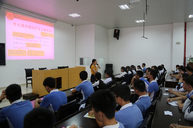 下午5点,团校成立大会暨第一次团课在微格教室举行。团委书记陈静雯,组织委员冯俊伟,年级团总支书,部分团员代表及全校入团积极分子参加了本次大会。大会主要通过了华中师大龙岗附中团校相关制度,确立了党委书记刘彩宾为校长、党委副书记张丽清为副校长、党委委员和团委委员为领导小组的团校管理体系,并对团校工作做了具体部署。