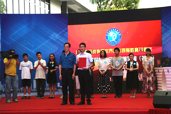 5月30日下午,深圳市第十三届社会科学普及周闭幕式在文化创意园举行,华中师大龙岗附中作为深圳市唯一一所“铭记历史·珍视和平”历史征文比赛的优秀组织奖得主获邀出席闭幕式。