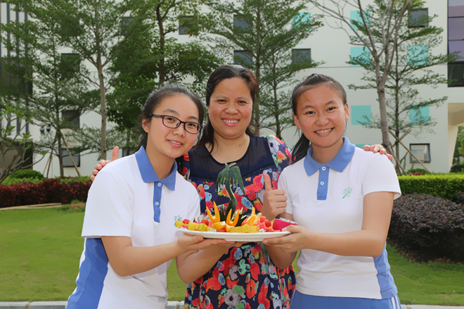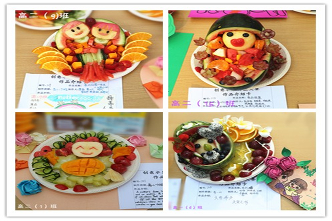 一位母亲看着自己儿子班级“爱妈妈”的拼盘,感动地说:“我的孩子以前很少做家务,为了这次创意拼盘大赛,他从上个周末就开始“偷师学艺”,拿零花钱买了好多水果孝敬我们,还让我们教他切水果。他今天的作品让我感觉非常骄傲。”活动现场,不少学生、家长和老师们端着水果拼盘合影,场面格外温馨。见此情景,德育处副主任任翔不禁感慨:“中国人大都比较含蓄,很少将’爱’字说出口。很开心这次的活动帮大家将爱用创意表达了出来。”